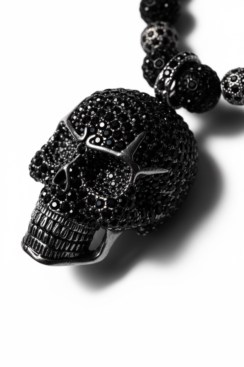 Insanely Cool Handmade Stainless Steel Beaded Skull Chain with Moissanite Stones. Guaranteed to Uniquely Outshine Anybody in Every Room. Will Never be Made Again.